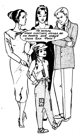 Куда бы она ни собиралась, она шла туда в одном из вышеупомянутых нарядов! Других вариантов она себе просто не представляла, считая примерно так: "Я – это я, почему я должна менять себя в угоду каким-то правилам и традициям?!"