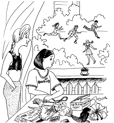 Долгожданное гуляние началось! Сначала подружки в тысячный раз показали друг другу своих кукол в самых разнообразных нарядах, обсудили интересные журнальные статьи. Потом они рисовали эскизы к новой одежде для кукол. После рисунков они пожевали "Love is" и увлеклись мозаикой.