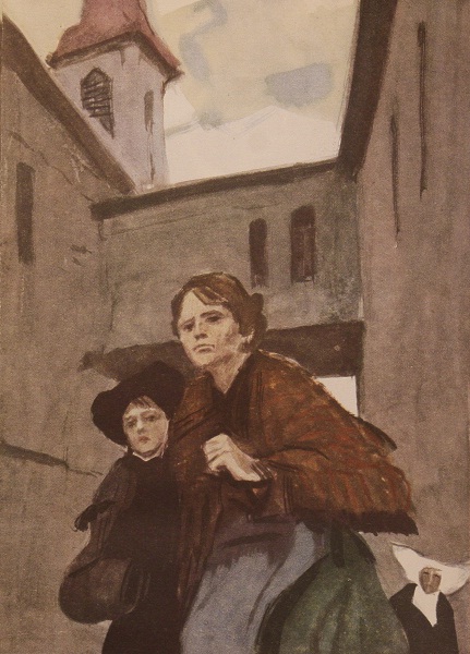 Конец ее фразы теряется во всхлипываниях, которые переходят в безутешные рыдания. При первых же словах злосчастной женщины Белизер тихонько выходит из комнаты и прикрывает за собой дверь: он чувствует себя лишним при этой семейной сцене. Джек смотрит на мать со страхом и с жалостью. Как она переменилась, как она бледна! На дворе уже день, солнечный свет заливает небольшую комнату, и следы, оставленные временем на лице женщины, бросаются в глаза: на висках ее поблескивают седые волосы, которые она даже не постаралась спрятать. Не утирая слез, она говорит без остановки, бессвязно, говорит первое, что ей приходит в голову, жалуется на человека, которого только что покинула, ей столько надо высказать, что слова застревают у нее в горле и она заикается: