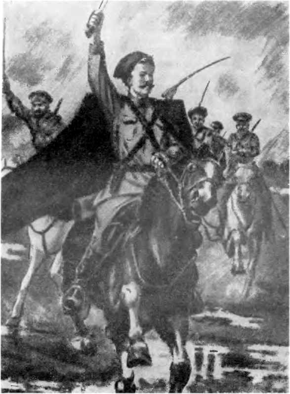 На своём великолепном рыжем коне, в развевающейся бурке, он выскочил откуда-то сбоку, из-за пригорка, и полным галопом понёсся вдоль цепей. Позади скакали ординарцы, вестовые, связные, и ближе всех главный ординарец — Петя Исаев.