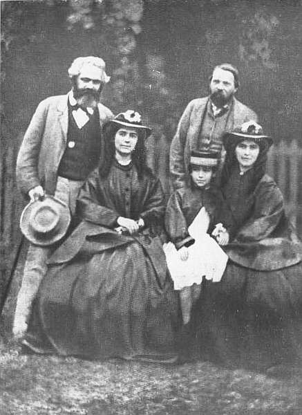 Карл Маркс с дочерьми и Фридрих Энгельс (фото 60-х годов XIX века)