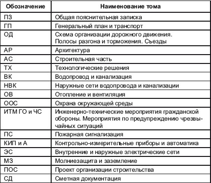 Таблица 1. Примерный перечень проектной документации