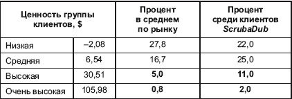 База клиентов со стандартными для моечного рынка пропорциями групп клиентов была ненамного лучше, чем если бы все клиенты имели ценность чуть больше $1.