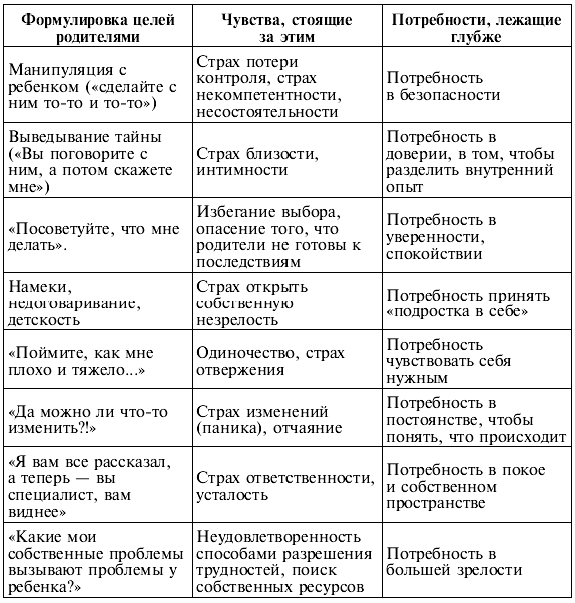 Задача консультанта – до конца прояснять динамику этих и подобных паттернов поведения родителей и помочь родителям и подростку осознать то, как они действуют.