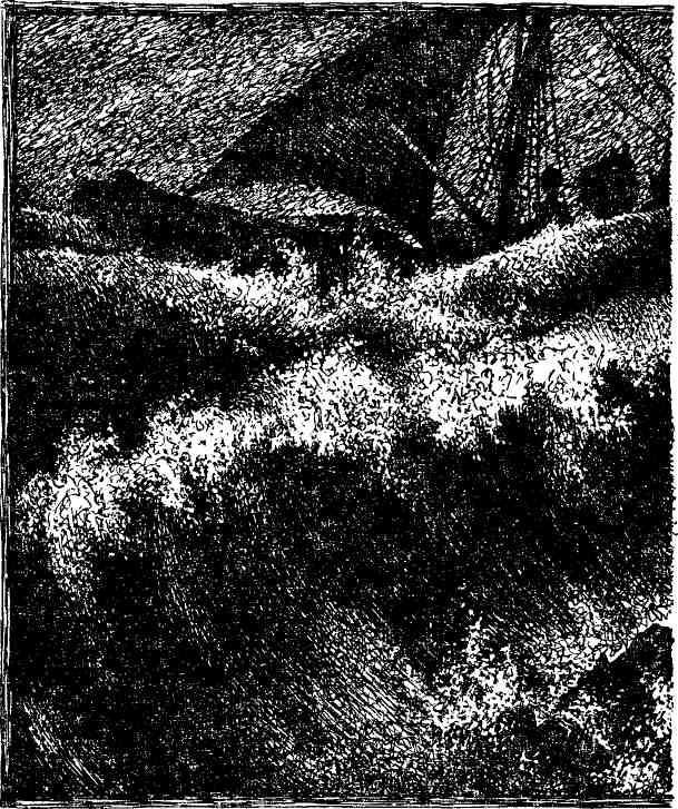 Мы буквально терзали кошельковый брезент. Макук, прихрамывая и сутулясь, носился среди нас как дух. Он был страшен: крючковатый нос жестко скрючен, морщинистое лицо перекосила твердая судорога. Полы шубы развевались, а шапка — торчащим ухом вперед. Когда мы с боцманом стали оснащать верхний угол, который должен идти на мачту, он повис над нами: