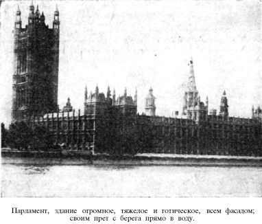 Река Темза делит Лондон примерно пополам. Мостов через Темзу столько, сколько нужно, чтобы четыре миллиона человек, живущих на одном берегу, могли ходить по делу и в гости к четырем миллионам, живущим на другом берегу. Первый мост Башенный. На двух его быках-устоях возвышаются две высочайшие четырехгранные башни. Между ними половинки разъемного моста поднимаются по обе стороны к башням, как два гигантских шлагбаума. Английское имя его — Тауэр Бридж. Рядом стоит старинный замок, тюрьма и казарма Тауэр оф Лондон. Сюда некогда революционная английская буржуазия сажала своих королей и королев, здесь совершались тайные и явные политические убийства.