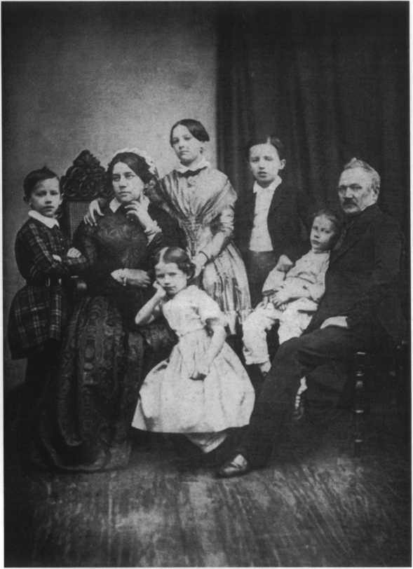 Семья Чайковских (слева направо): Петр, Александра Андреевна, Александра, Зинаида, Николай, Ипполит, Илья Петрович. 1848 г.