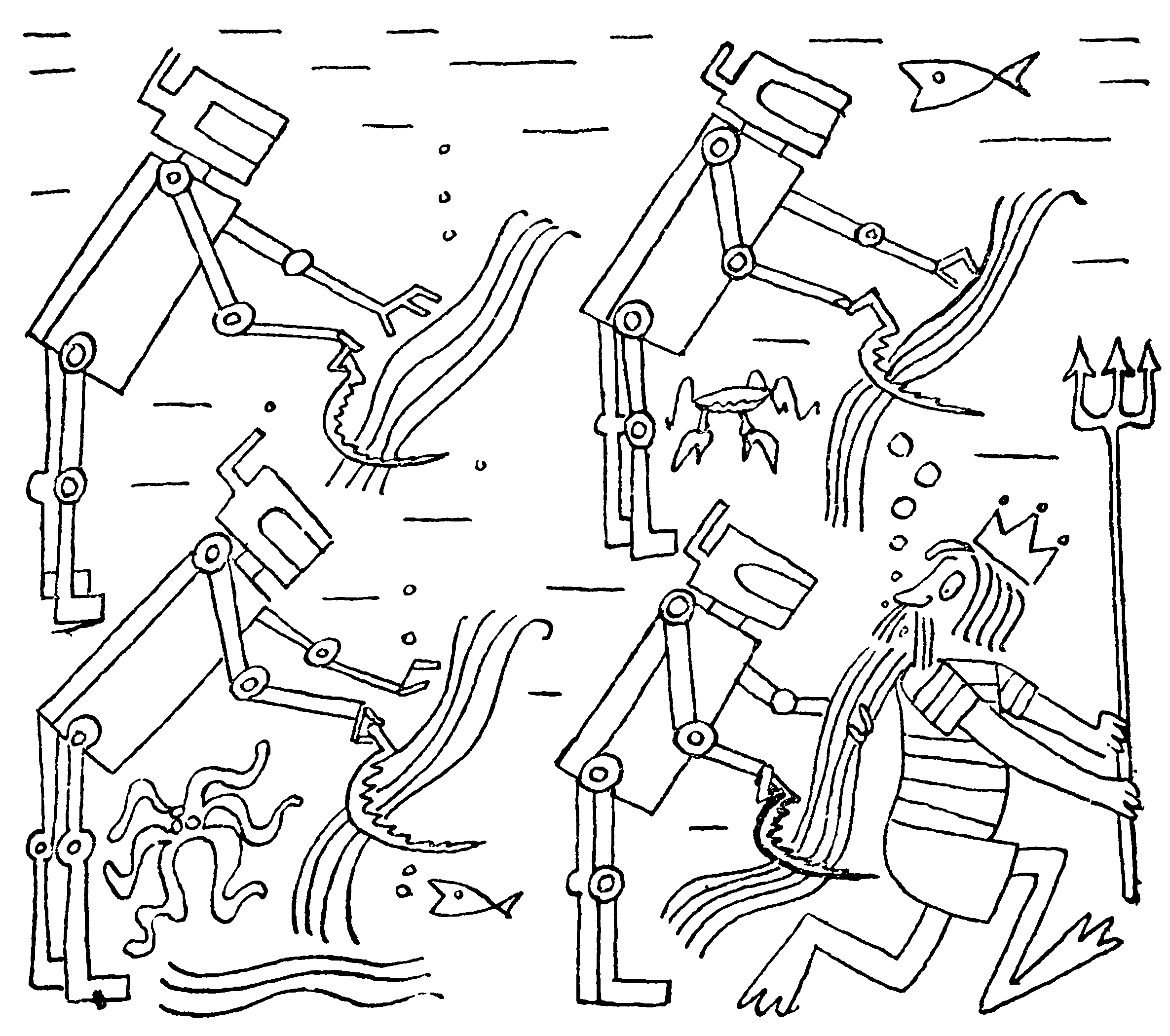 Ныряльщикам, аквалангистам, водолазам доступна лишь малая часть шельфа. Чтобы проникнуть в глубины океана, человеку нужны более совершенные технические средства. И уже в течение многих лет ведутся работы по созданию глубоководных снарядов, специальных подводных кораблей, подводных лабораторий. Человек уже побывал на самых больших глубинах. Чтобы защититься от сокрушительных давлений, он забрался в стальную коробку. В ней можно жить и двигаться, можно наблюдать и изучать подводный мир, как это делали пассажиры "Наутилуса", "построенного" фантазией Жюля Верна. Но теперь человеку этого мало так же, как ему было бы мало, если бы он имел возможность только наблюдать за тем, что происходит в "горячей" камере атомной лаборатории, не вмешиваясь активно в происходящее там.