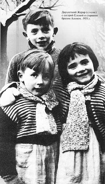 Двухлетний Жерар (слева) с сестрой Еленой и старшим братом Аленом. 1951 г.