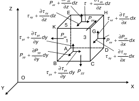 Рис. 1. Силы, действующие на элементарный объем вязкой жидкости в потоке