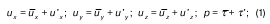 черта у величин наверху означает, что параметр усреднен по времени; у величин u'x, u'y, u'z, p', ' черта сверху означает, что имеется в виду пульсационная составляющая соответствующего параметра («добавка»).