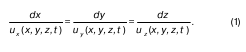 Формула (1) является дифференциальным уравнением линии тока в момент времени t. Следовательно, задав различные ti по полученным i, где i = 1,2, 3, …, можно построить линию тока: ею будет огибающая ломаной линии, состоящей из i.