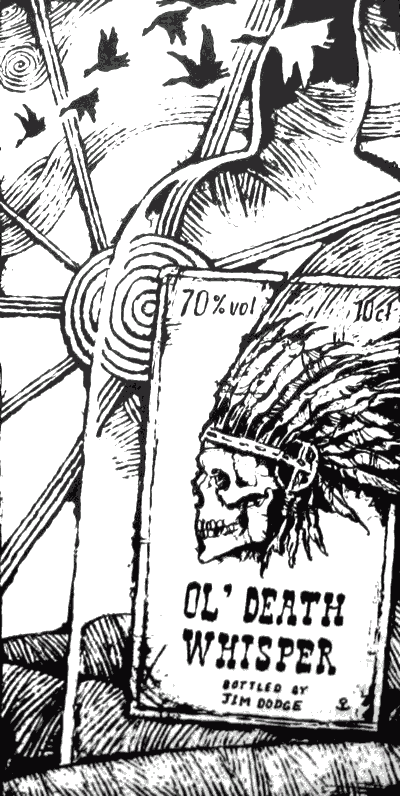 В один прекрасный день конца 60-х к ним на ранчо забрел хиппи. Моргая вакуумными глазами и растягивая слова, он объявил, что ищет и приветствует любые формы ментальной трансформации, а потому, прослышав, что Джейк изобрел питье, насыщенное сознаньеменятельными свойствами, предлагает ему две таблетки ЛСД в обмен на приличный образец продукта. Дедушка сперва покричал и повизжал о том, как он ненавидит наркотики и как эту никчемную, длинноволосую, сраную жопу следует пристрелить за попытку совратить его внука, но, поскольку налицо был тот самый редкий случай, когда человек действительно желал попробовать Шепот Старой Смерти, Джейк смягчился, хоть и отказался от обмена. Длинноволосый представился Биллом-Трясучкой и настоял на оптимальной дозе, каковой Дедушка, ориентируясь на собственную выносливость, посчитал пинту. Длинноволосый, несмотря на заметные после первого глотка признаки потрясения, умудрился вогнать в себя еще шесть или семь коротких бульков, затем рухнул на крыльцо в таких корчах, что примчался Босс, вечно недовольный и озабоченный Крохин пес, и принялся пинать его носом. Это вызвало в длинноволосом того сорта ментальную трансформацию, суть которой невероятно трудно уловить. Насколько Дедушка понял, его волосатый приятель решил, что он теперь енот или кто-то вроде — ибо незамедлительно укрылся под ореховым деревом, затем одним гигантским прыжком вознесся по стволу и следующее три часа просидел среди редких веток, нахохлившись, как больной канюк. Первый час он рыдал. Второй час он смеялся. Третий час он сидел тихо. В начале четвертого часа Билл-Трясучка ринулся вперед и плюхнулся на землю, как мешок сырого зерна. Сломал обе руки. По дороге в больницу объявил, что купит весь имеющийся дедушкин запас и всю будущую продукцию по двадцать долларов за пинту в обмен на исключительное право распространения. За несколько лет напиток стал культовым среди ценителей бессвязного забвения, а дедушка Джейк смог поддерживать их общий с Крохой счет на постоянной отметке в триста тысяч долларов.