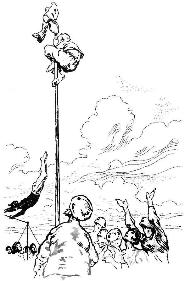 Героем шеста оказался Лентя. Он повторил свой опыт с березой, то есть предварительно разбежался. Взмахнул на шест Лентя с быстротой изумительной. Тетке Марье даже на минуту показалось, что мальчишка лезет уже по небу.