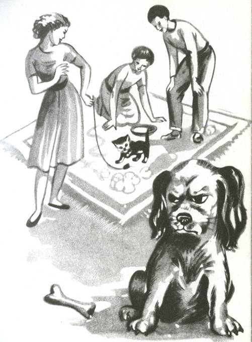 За едой Алсид переживал жестокие нравственные пытки. Котенку давали маленькие кусочки мяса, и он с аппетитом ел их, сидя на коленях у хозяйки, Алсид же получал кости, на которых не было даже признаков мяса. И при этом его еще упрекали, что он грызет их неприлично громко.