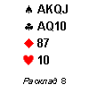 | Комбинация карт | AQ10 | AQx | KJ9 | KJx | AJ109 | Axxx | KQ109 | KQxx | QJ9 | QJx |
