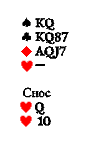 И это ещё очень хорошая карта. На ней можно даже играть без козыря. Но лучше заказать козырем такую масть, которую вы никогда сами не разработаете так, чтобы получить две-три взятки. В данном случае лучший козырь — бубна (или трефа). Снести можно две червы.