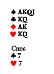 О выборе козырной масти мы уже говорили достаточно. Зададимся вопросом: когда вообще следует заказывать козырь, а когда лучше играть без козыря? Ответ достаточно очевиден: если у нас есть все приёмы при чужом ходе и мы гарантированно можем взять необходимое количество взяток без козыря, а наличие козыря может создать проблемы (даже при маловероятном раскладе), лучше играть без козыря. Но такие ситуации бывают достаточно редко.