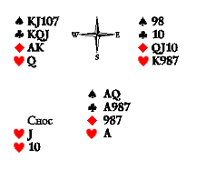 А если бы разыгрывающий неосмотрительно вскочил бы на первую бубну тузом, он неминуемо отдал бы три взятки.