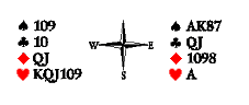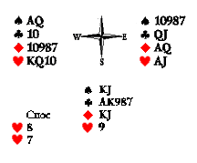 Обратите внимание, что вистующие выбрали план действий, не приводящий к ущербу в случае, если снос оказался бы любым другим. Это очень важный момент, который всегда следует иметь в виду. Всегда нужно задавать себе контрольный вопрос: что будет, если разыгрывающий снёс «по-хитрому» или просто иначе, чем мы предположили заранее? Представьте, что вы на месте Востока вистуете 6