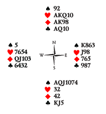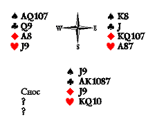 Поэтому я бы на месте Юга снёс по одной пике и бубне, страхуясь от сюркупа, особенно неприятного, если вистовать будут втёмную.