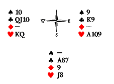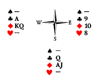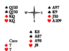 Козырь черва. Играет Юг. Ход Запада. Задача ставится такая: не дать Югу ни одной взятки.