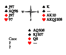 Запад заказал мизер и пошёл с восьмёрки треф.