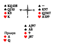 г) у Запада нет восьмёрки пик (она в прикупе), и мы никогда не получим хода, чтобы пойти в черву.