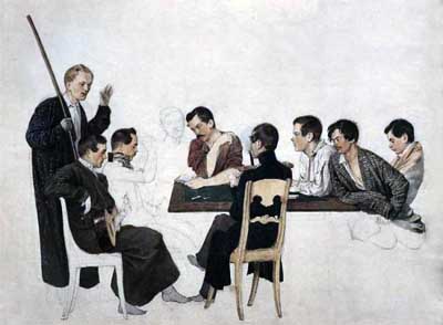П. А. Федотов «Игра в карты (Федотов и его товарищи по лейб-гвардии Финляндскому полку)». 1840 г. 24,8 x 33,6 см. Государственная Третьяковская галерея, Москва