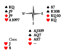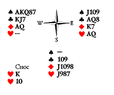 Условие: Юг играет шесть червей. Ход Запада.
