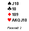 Несколько общих замечаний о прогнозе взяток на распасовке. При неизвестном раскладе и розыгрыше партнёров — это сложная вероятностная задача. Но на практике она обычно не вызывает у игроков больших затруднений. Общие рекомендации — полагайтесь на игровой опыт. При этом целесообразно учитывать, что ожидаемое количество взяток уменьшается, если у вас косой расклад или вы на третьей позиции. Например, из двух раскладов (5 и 6) второй, безусловно, предпочтительнее, особенно на третьей позиции.