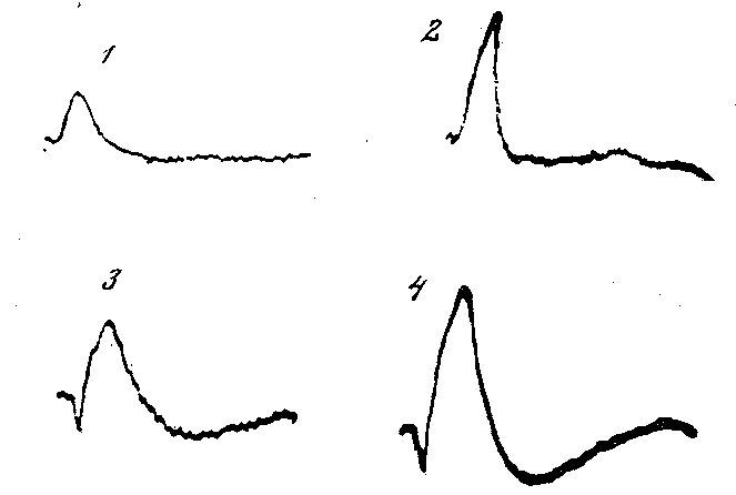 Итак, процесс восприятия света, как установил Д. Уолд, начинается с фотохимической реакции, в ходе которой происходит изменение конформации (геометрической формы) и распад молекул зрительных пигментов, а затем возникает электрический импульс. Колебания электрического потенциала сетчатки при ее освещении удается зарегистрировать в виде характерной кривой электроретинограммы (рис. 8). Однако энергия, освобождающаяся при фотохимической реакции, недостаточна для возникновения электрического импульса и распространения волны возбуждения по нерву. Расчеты показывают, что необходимо усиление этого процесса приблизительно на 4—5 порядков.