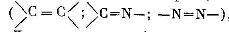 легко возбуждаются. Для перехода на более высокий энергетический уровень таким электронам (их называют пи-электронами) требуется гораздо меньше энергии. Но и вещества с двойными связями поглощают только ультрафиолетовые лучи, а потому они не окрашены. Особенно подвижны пи-электроны в соединениях с сопряженными, правильно чередующимися двойными связями. Таковы, например, полиметиновые и азометиновые цепи атомов, а также замкнутые, главным образом шестичленные кольца и их агрегаты. Во всех этих структурах пи-электроны настолько слабо связаны со своими двумя атомами, что свободно перемещаются по всей структуре молекулы. Такие делокализованные электроны особенно легко возбуждаются квантами небольшой величины. Вещества, содержащие де-локализованные пи-электроны, способны поглощать фотоны света в видимой области спектра, т. е. они окрашены.