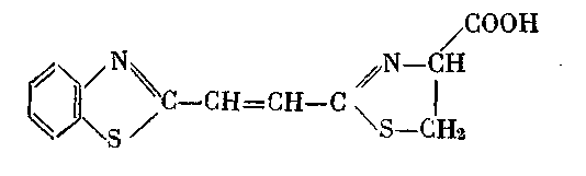Люцифераза в 100 раз повышает скорость окисления люциферина и в 100 тыс. раз — выход люминесценции. Люциферин — производное бензотиазола, горючее процесса люминесценции, имеющее такую структуру: