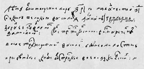 Запись на книге «О постничестве» святого Василия Великого. 14 августа 1602 г. Автограф самозванца (?).