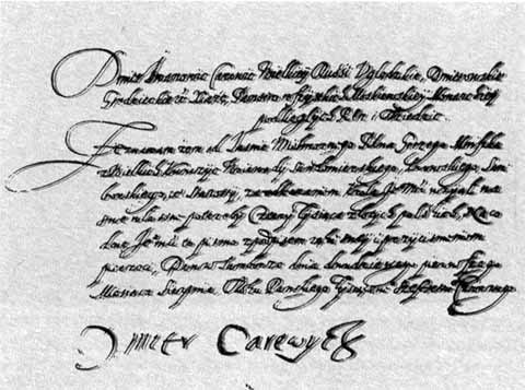Расписка Лжедмитрия на имя воеводы Юрия Мнишка о получении четырех тысяч злотых. 21 августа 1604 г. Ныне утеряна.