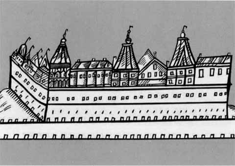 Дворец Лжедмитрия в Москве. Рисунок из книги Исаака Массы.
