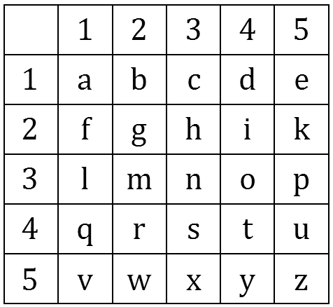 Пятью пять! Да, верно. Значит первая строчка; а, b, с, d, е. Да, так и в книге Фигнер. Конечно!.. Квадрат!.. Он ясно видит его перед собою…