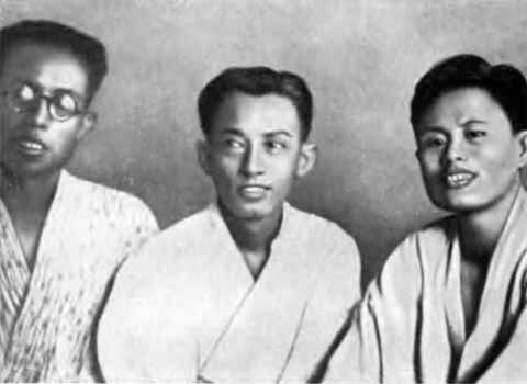 Япония. 1941 год. Аун Сан ( справа) и его товарищи в японском лагере.