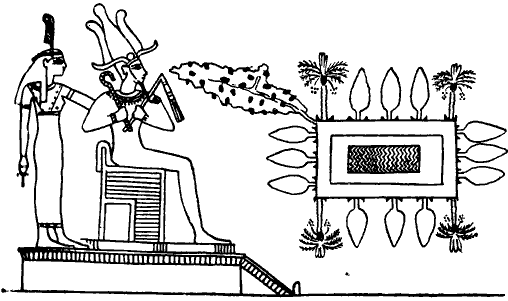 30. Виноградная лоза и деревья перед престолом Осириса (Budge,Osiris, 1, фронтиспис).