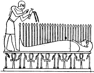 35. Жрец поливает прорастающего Осириса (Erman-Ranke, Aegypten, рис. 139).