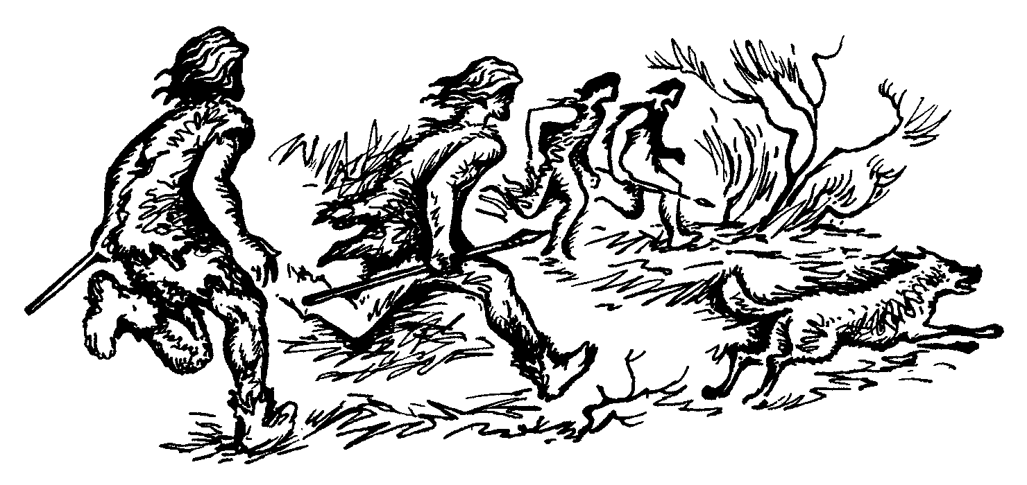 Выждав немного, юноши бесшумно подкрались к краю обрыва и увидели стаю полосатых гиен. Со смехом выскочили наверх, потрясая копьями. Хищники рысцой побежали прочь — они не выносили запаха человека, всегда смешанного с запахом дыма.