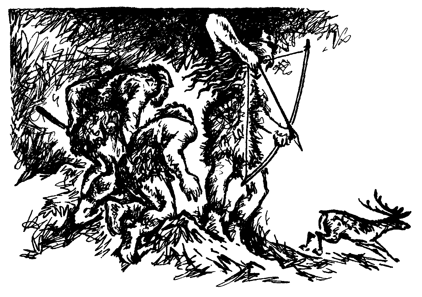 На обратном пути они поочерёдно стреляли по всякой живности, попадавшейся на глаза, но ни одну цель поразить им не удалось, да они и не очень заботились об этом. Вообще ланнам не надо было дважды показывать, как и что делать. Теперь они могли сами изготовить стрелы и лук. И вскоре всё племя вооружилось ими. Появились первые трофеи: крупный лось, несколько кабанов и лошадей, волки, гиены, песцы, птицы. Животные, привыкшие к тому, что они неуязвимы для людей на определённом расстоянии, не боялись ещё нового оружия, и успехи охотников были необычайными. Впервые за свою историю племя не испытывало зимой голода.