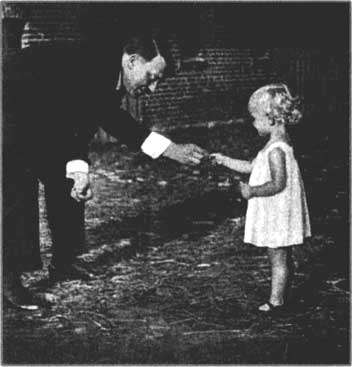 Для малышей, бегающих по комнатам, по двору и саду его дома, Фюрер всегда находит ласковое слово и какой-нибудь подарок