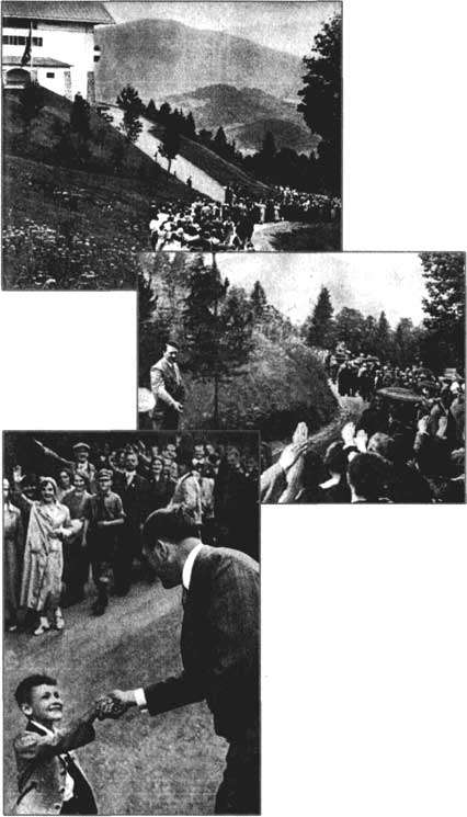 Стоит окресному населению узнать, что Фюрер приехал, как сейчас же народ стекается толпами к его дому. Конечно, Адольф Гитлер не имеет возможности поговорить с каждым, но для детей он всегда находит время