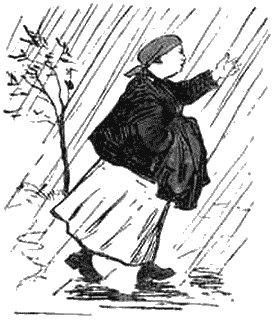 Не успела она дойти до конца улицы, как ударил гром и первые капли дождя упали на ее лицо.