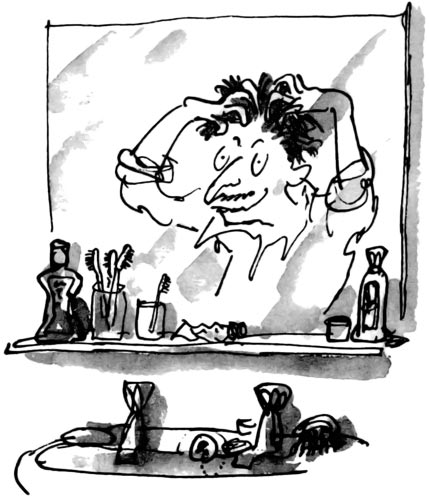 — О Боже милостивый! — завопил отец, глядя в маленькое зеркальце. — Что это со мной? Какой ужас! Я не могу идти в гараж в таком виде и продавать машины! Как же это случилось? — Он огляделся, задержавшись взглядом на жене, потом на сыне, потом на Матильде. — Как же такое могло произойти? — кричал он.