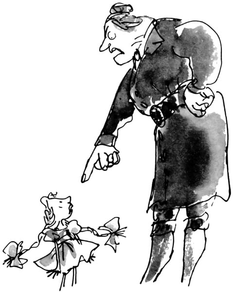 Матильда и Лэвиндер обернулись и увидели гигантскую фигуру мисс Транчбуль, приближающуюся сквозь толпу мальчиков и девочек крупными шагами, в которых таилась угроза. Дети поспешно расступались, чтобы дать ей возможность пройти. Она шагала по асфальту, как Моисей по Красному морю, воды которого расступались перед ним: очень у нее была внушительная фигура в этой подпоясанной ремнем куртке и зеленых бриджах. Икры растягивали чулки точно грейпфруты.