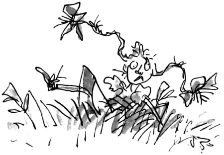 — Ладно, тогда слушайте, — сказала Гортензия. — Вот что случилось буквально вчера; Транчбуль увидела, как на уроке священной истории один мальчик, которого зовут Джулиус Ротвинкль, ест конфеты. Она схватила его за руку и вышвырнула в окно. И вот мы видим, как Джулиус Ротвинкль летит над садом как пушечное ядро или как фризби и шлепается посреди грядок с салатом. А Транчбуль поворачивается к нам и говорит: „Отныне всякий, кто ест в классе, вылетит прямо в окно“.