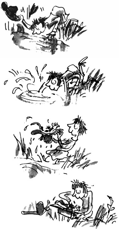 Тритон, хотя он и нередко встречается в английских прудах, не часто попадается людям на глаза, поскольку существо это робкое и угрюмое. Внешность у него невероятно безобразная, он выглядит как маленький крокодильчик, только голова у него короче. Он совершенно безобиден, но глядя на него, этого не скажешь. В длину он около шести дюймов, то есть сантиметров пятнадцать, он очень скользкий, спинка у него зеленовато-серого цвета, а брюшко оранжевое. По существу, это амфибия, и поэтому тритон может жить как в воде, так и без воды.